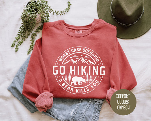 Go Hiking Worst Case Scenario a Bear Kills You Comfort Colors Sweatshirt