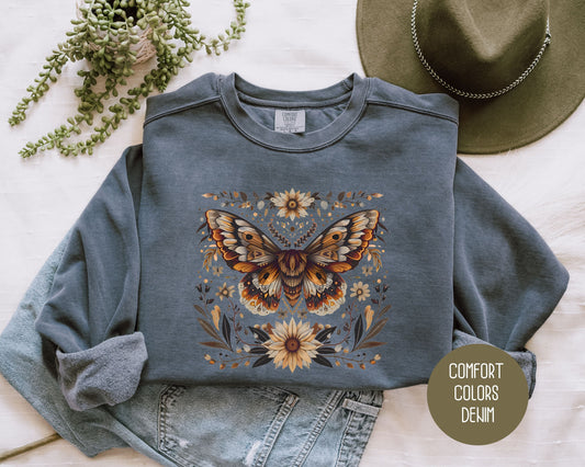 Bohemian Sunflower Moth Comfort Colors Sweatshirt
