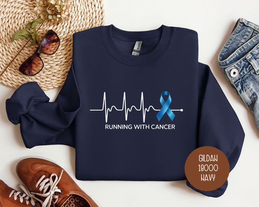 Running With Cancer Awareness Ribbon Heartbeat Sweatshirt