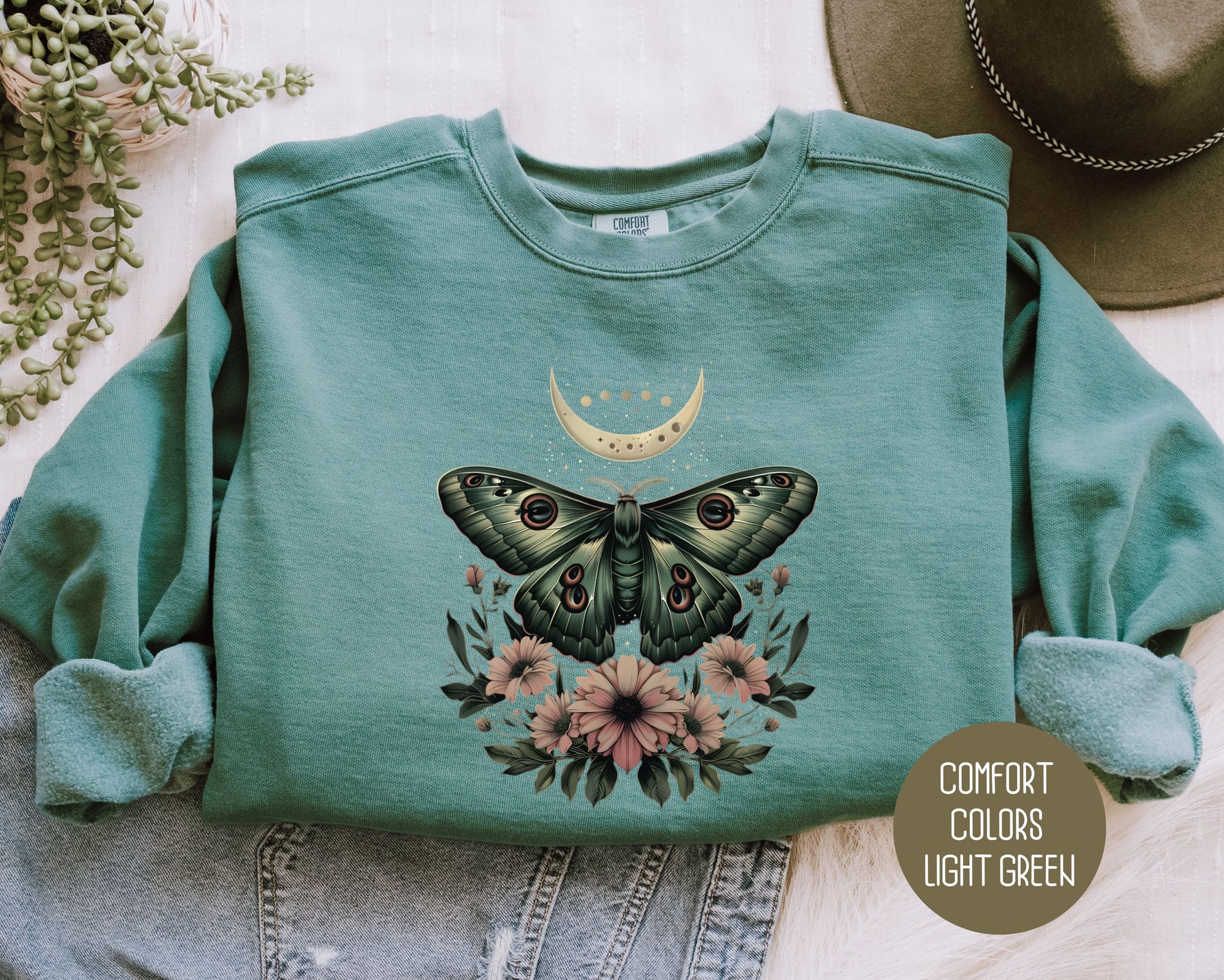 Bohemian Mystic Moon Phase Moth Comfort Colors Sweatshirts